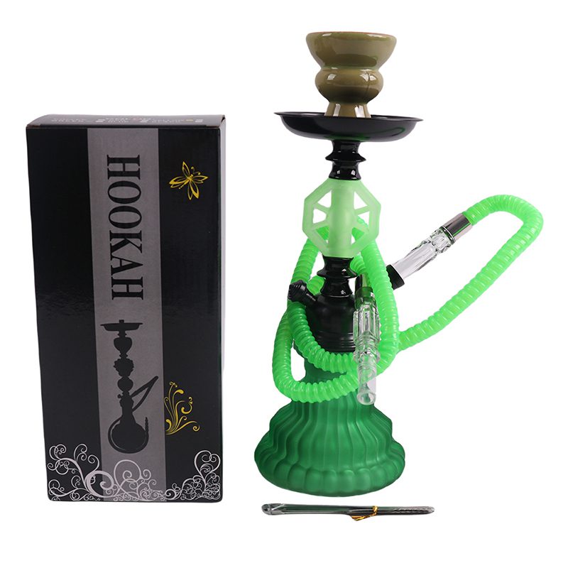 12″ Hookah Single Hose, HEX Shape Green Color SMKE-013