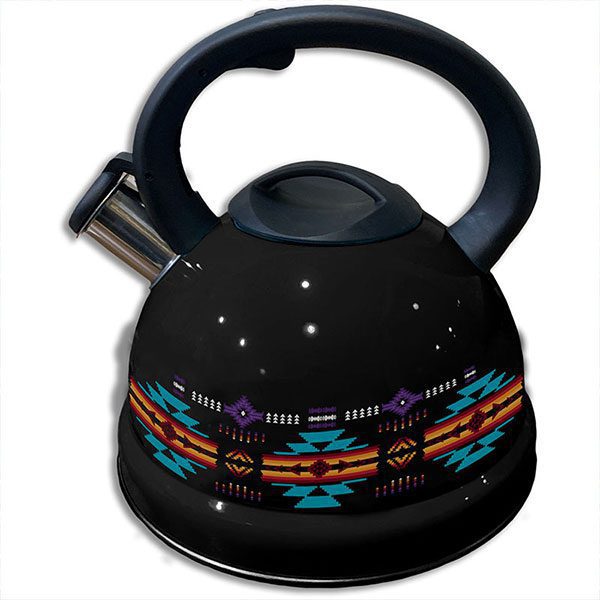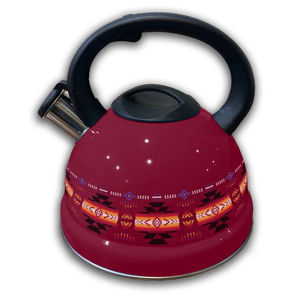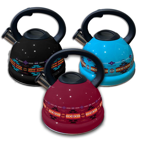 Stainless Steel Tea Kettle – Native Design – Assorted (Black/Turquoise/Burgundy/Blue/Oak) Colour: Assorted Design: Native Design Quantity: 12/Box Sold by Box Only!