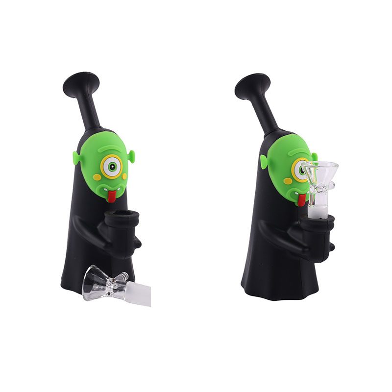 3″ Silicone Black Colored Alien Face Bong – SMKE-090-Green