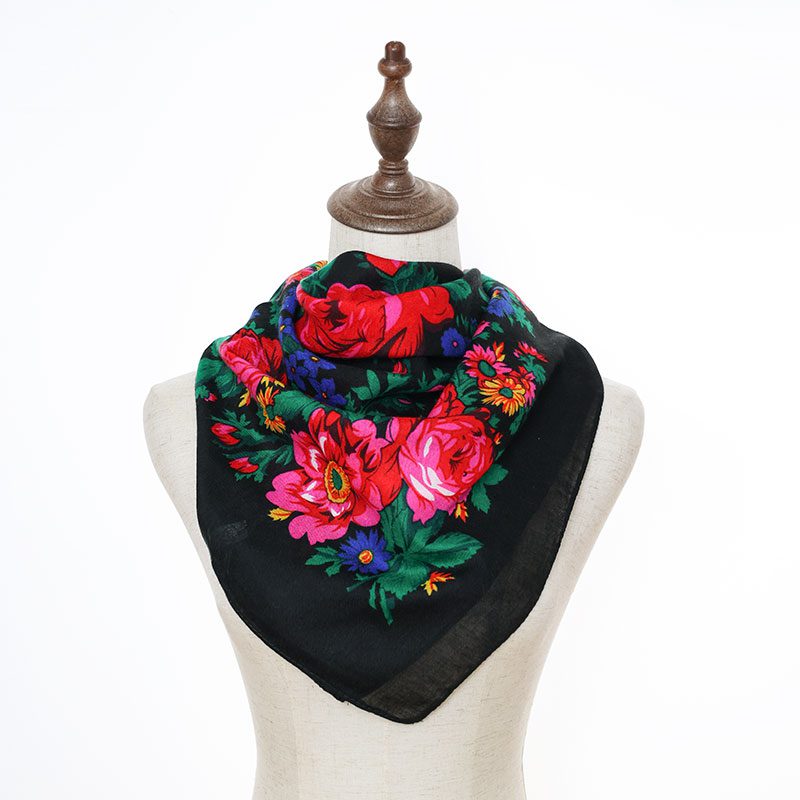 Non-Metallic Kokum Floral Printed Scarf Size: 30″ x 30″ (75*75cm) Color: Black Design: Floral Quantity: 10 Pcs / Pack Sold By Pack!