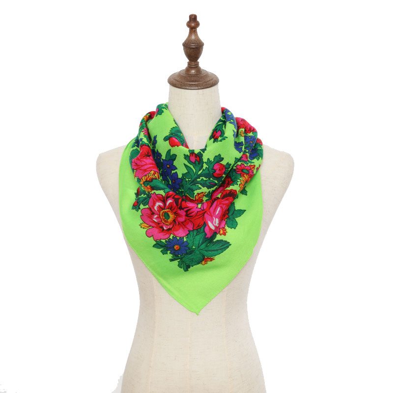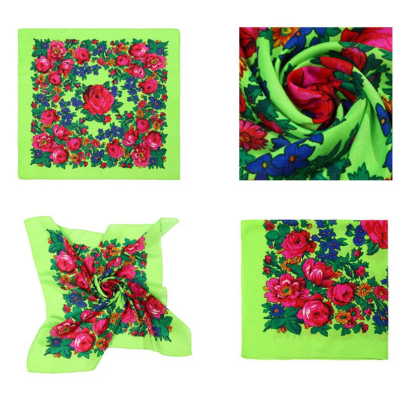 Non – Metallic Kokum Floral Printed Scarf Size: 30″ x 30″ (75*75cm) Color: Neon Green Design: Floral Quantity: 10 Pcs / Pack Sold By Pack!