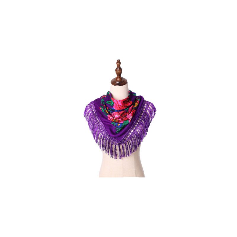 Non Metallic Kokum Floral Printed Scarf Size: 30″ x 30″ (75*75cm) Colour: Purple Design: Floral Style: Fringe Trim Quantity: 10/Pack Sold By Pack!