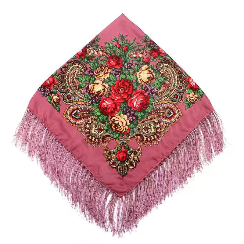 Floral Scarf Color: Dark Pink Size: 35″ x 35″ Style: Fringe Trim Material: 100% Polyester Design: Floral Quantity: 10/Pack Sold By Pack!