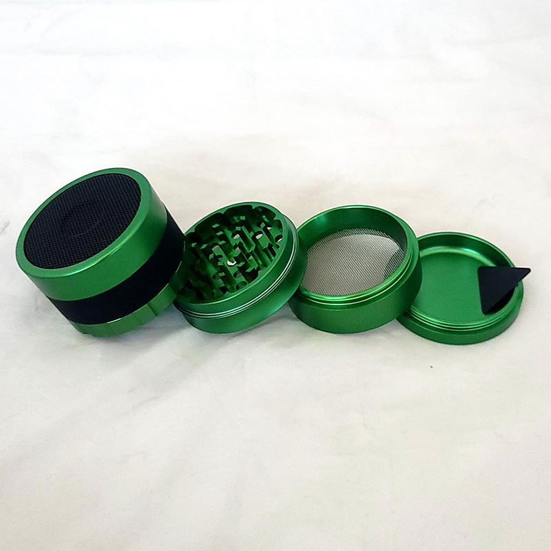 4 Part Aluminum Grinder with Build-in Speaker Colour: Green Parts: 4 Parts Diam: 63mm Height: 273mm Quantity: 4/Box Sold By Box Only!