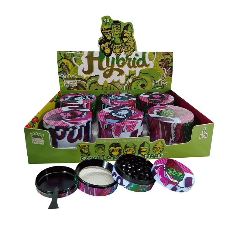 4 Part Grinder Hybrid, Rolling Stars Assorted Color & Printed Design Color: As in Picture Material: Zinc Dia: 60mm Quantity: 6Pcs/Display Sold by Display!