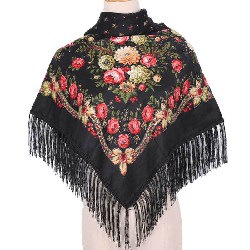 Non – Metallic Kokum Floral Printed Scarf Size: 43″ x 43″ (110*110cm) Colour: Black Design: Floral Quantity: 10/Pack Sold By Pack!