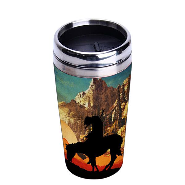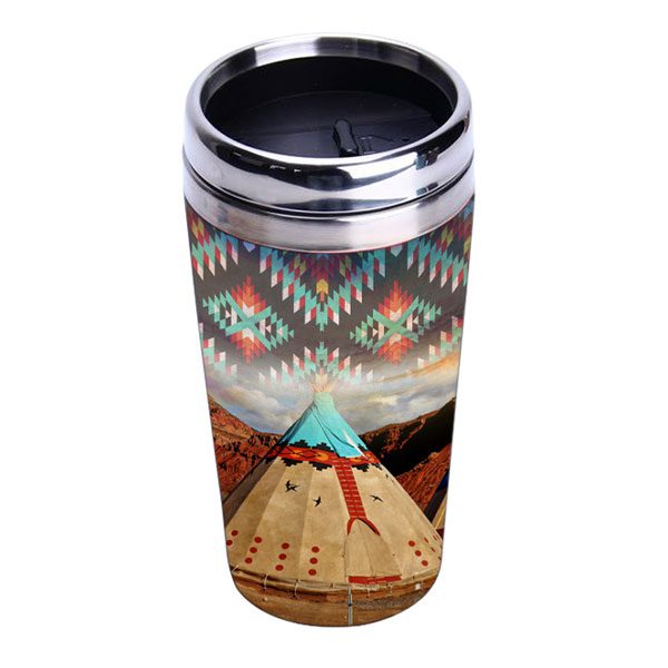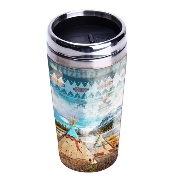 16oz Stainless Steel Travel Mug With Bamboo Graphic
