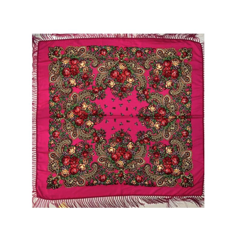 Floral Scarf Color: Fuchsia Size: 62″ x 62″ (160*160 cm) Style: Fringe Trim Material: 100% Polyester Design: Floral Quantity: 10/Pack Sold By Pack!