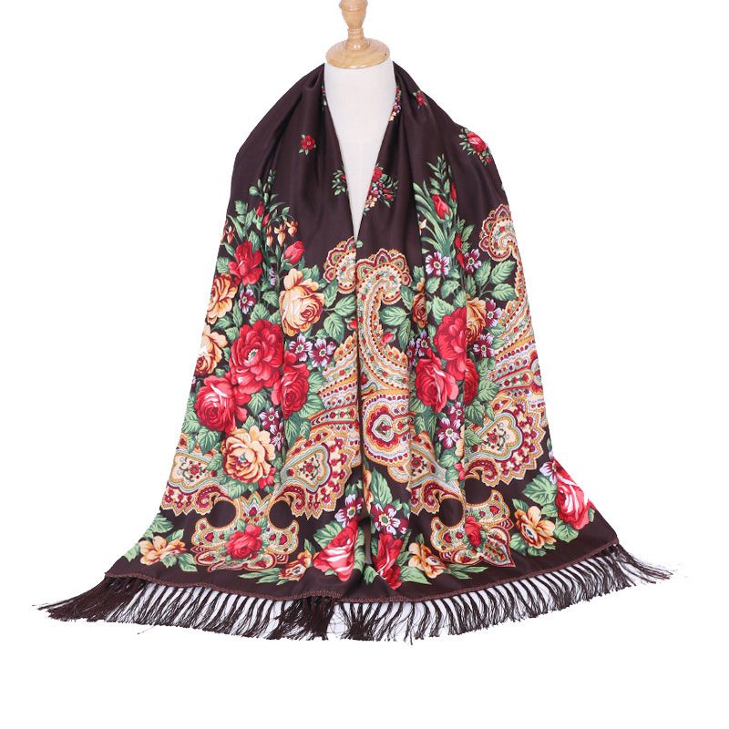 Non – Metallic Kokum Floral Printed Scarf Size: 78″ x 25″ (200*65cm) Colour: Coffee Design: Floral Quantity: 10/Pack Sold By Pack!