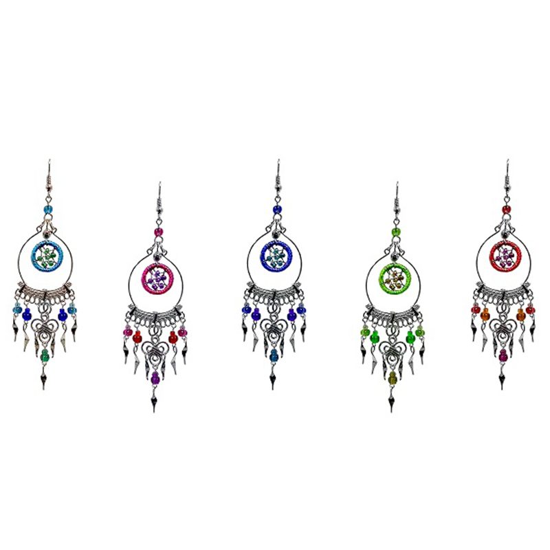 Baby Dream Cather Inlay Earrings With Long Beads