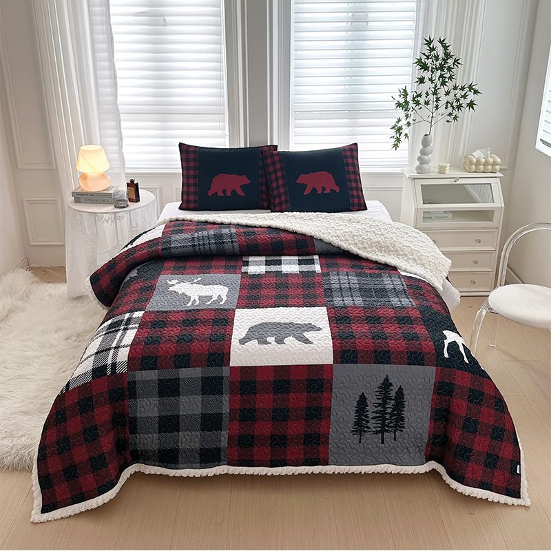 Bear Mountain Sherpa Lined 3 Pcs Queen Size Quilt Set