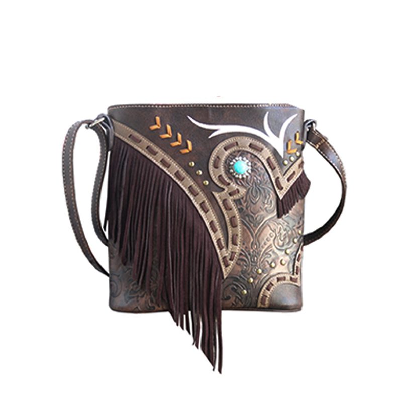 Concealed Carry Fringe Tooling Cross Body Bag – Brown (G605W200 BO)