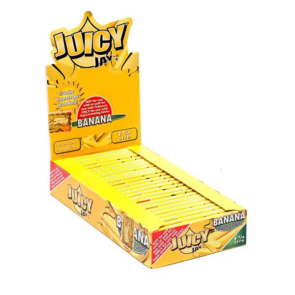 Juicy Jay’s Flavored Rolling Papers 1-¼ Size: 1 1/4″ (78mm x 44mm) Flavor: Banana Quantity: 32 Leaves/Pack (24 Pack/Box) Sold by Box!