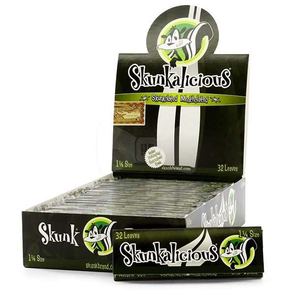 Cigarette Paper: Skunk; Hemp, 1-1/4, Skunkalicious Menthol, 25/Box Size: 1-1/4 Flavour: Skunkalicious Menthol Product Line: Skunk Quantity: 25/Box Sold by Box Only!