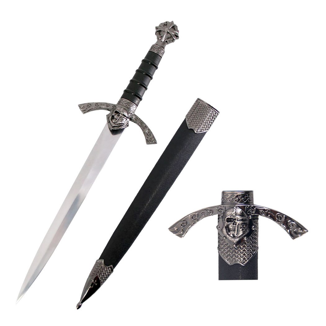 Defender 14.5″ Medieval Roman Dagger Skull Pattern Handle With Scabbard – 14290