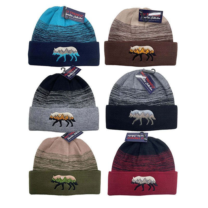 Embroidered Logo Jacquard Stripe Beanie – Wolf Color: Assorted Quantity: 12 Pcs / Pack Sold By Pack!
