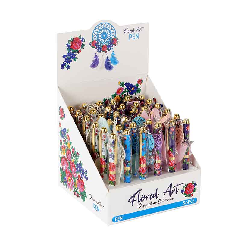 Floral Art Pen Color: Assorted Design: Floral Quantity: 36 Pcs / Display (9 pcs of each color) Sold by Display Only!