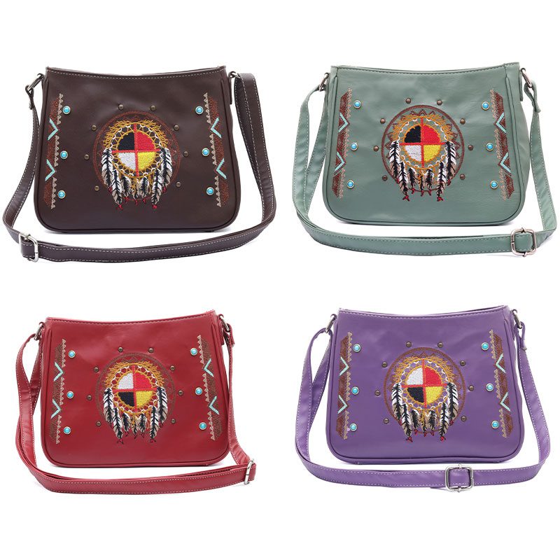 Embroidered Cross Body Bag Colour: Assorted Design: Medicine Wheel Quantity: 12/Pack Sold By Pack!