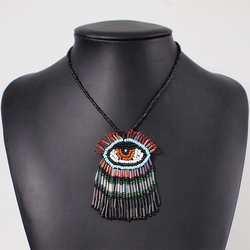 Evil Eye Beaded Indigenous Necklace Material: Beads & Metal Colours: White, + Black Quantity: 12/Pack Sold By Pack only!