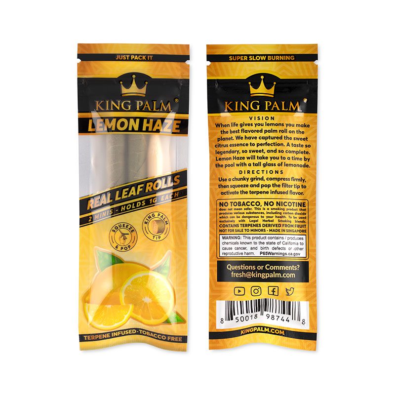 100% Pure Palm Leaf Hand Rolled Leaf – 2pk – King Palm Cones Flavour – Lemon Haze Size: Mini Quantity: 20 Packs/Display Sold by Display!
