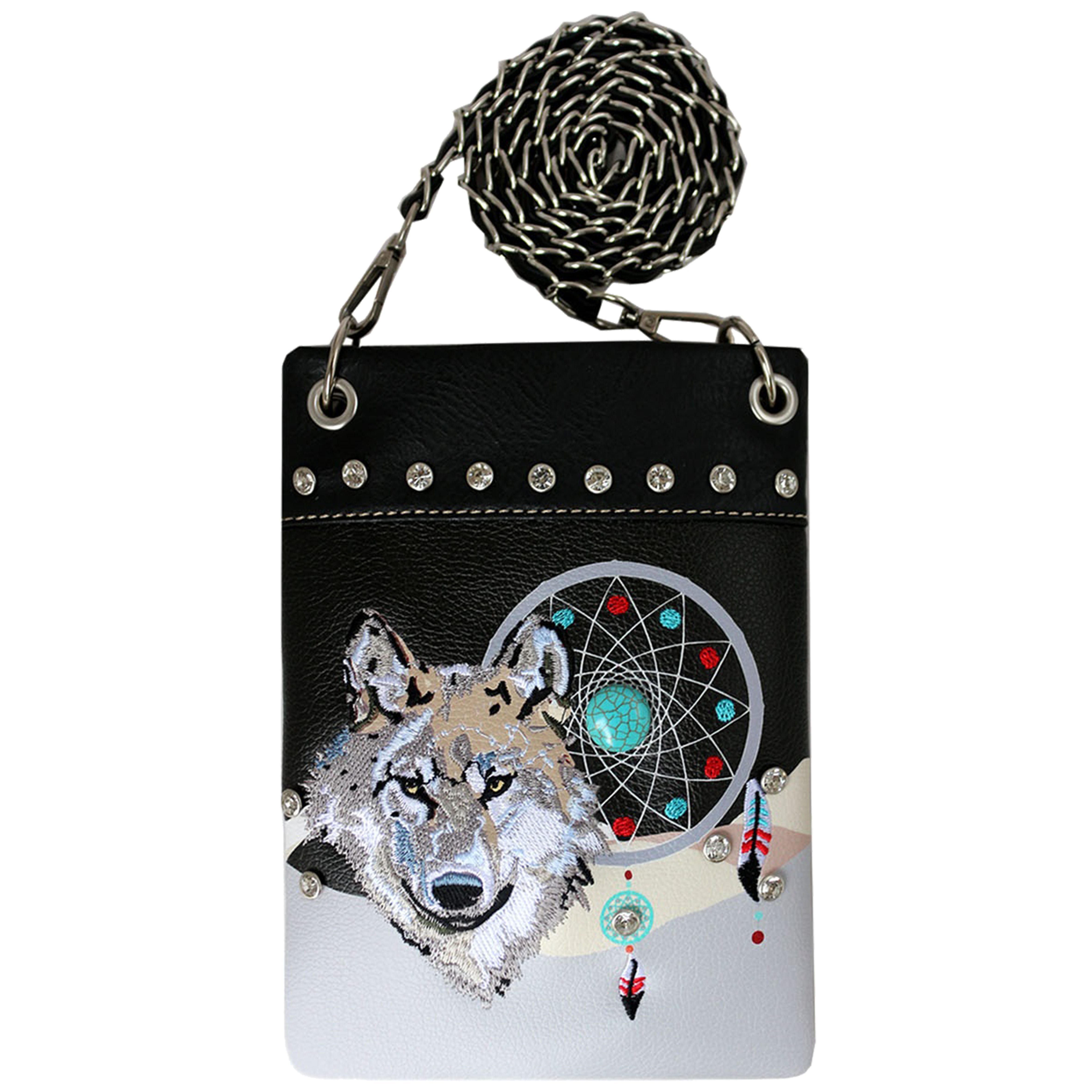 Ladies Designer Wolf Dreamcatcher Cross Body Bag- Black (2030W220 BK)