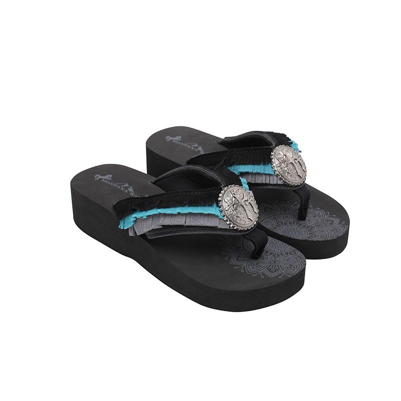 Mandala Cross Concho Fringe Wedge Western Flip-Flop