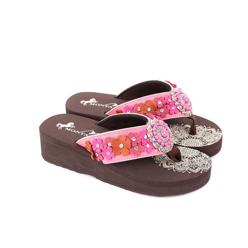 Mandala Floral Applique Wedge Flip-Flop