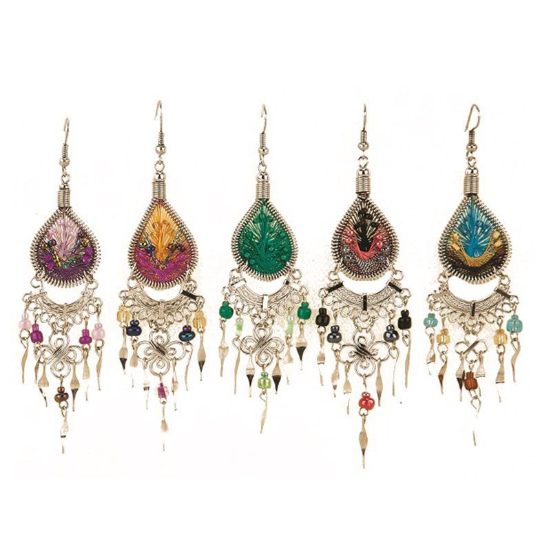 MTC-DMC Tear Dangle Earring Thread Teardrop W/Hole And Long Beaded Dangle