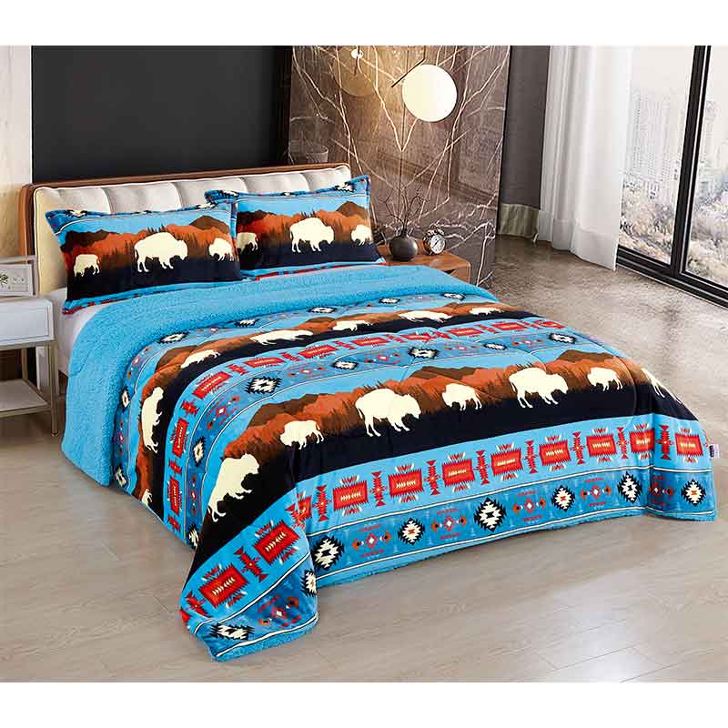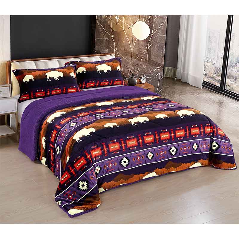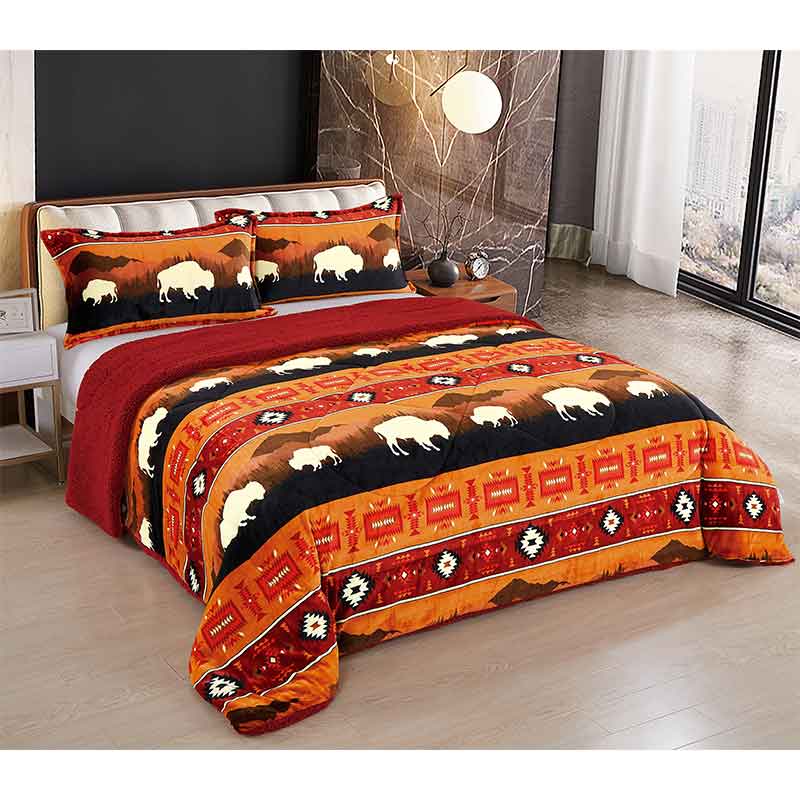 3 Pcs Silk Touch Sherpa Lined Blanket Set Color: Assorted Size: Queen Size Design: Rustic Bison Quantity: 4 Pcs / Box Sold By Box!