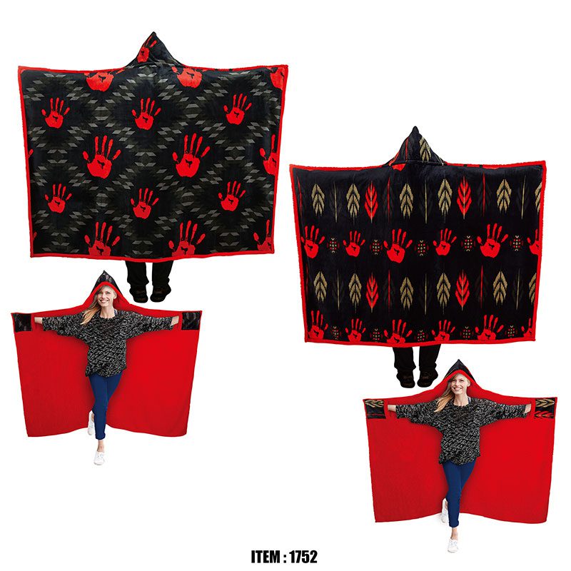 Sherpa Lined YNF Standard Premium Hooded Blanket Color: Red and Black Design: Assorted Quantity: 8 Pcs / Box – 2 Designs / Colors (Red Hand/ Red Hand) Sold by Box!