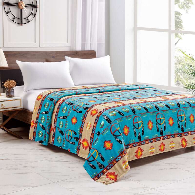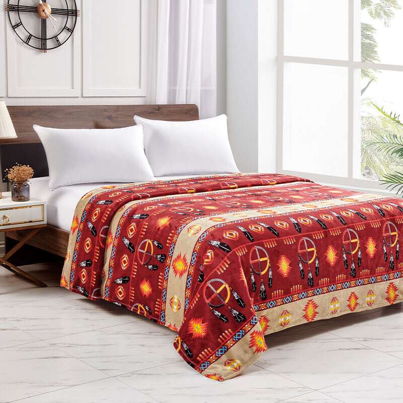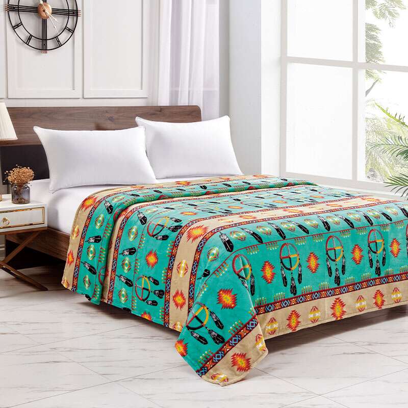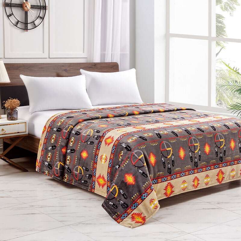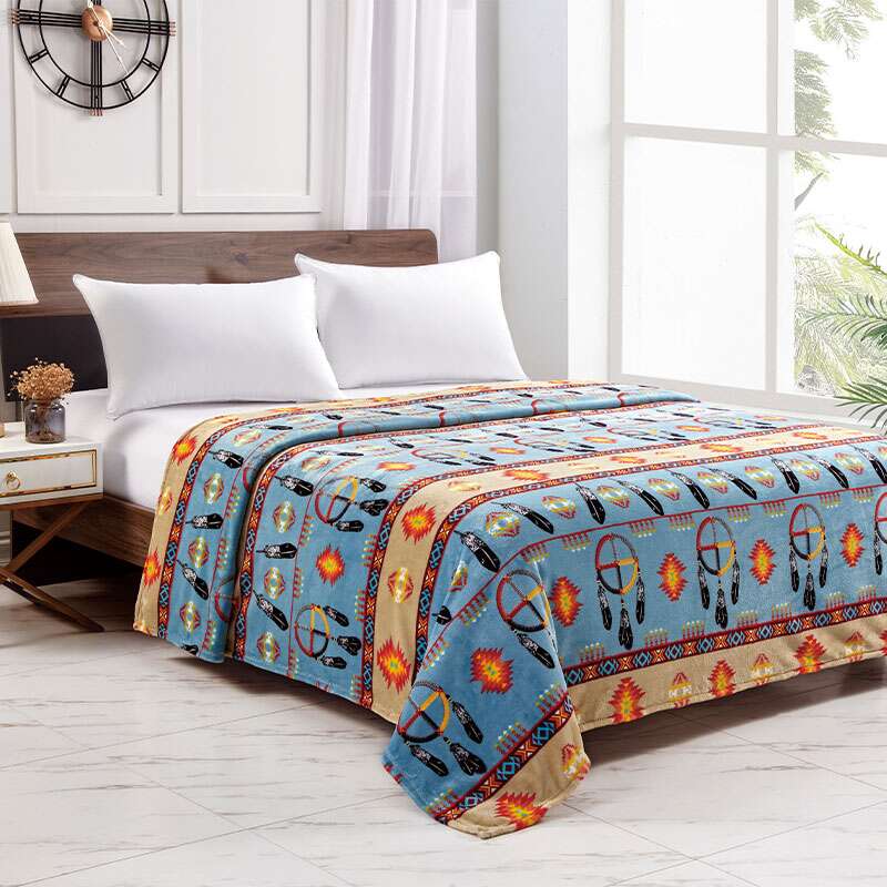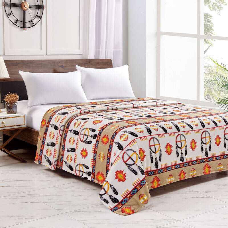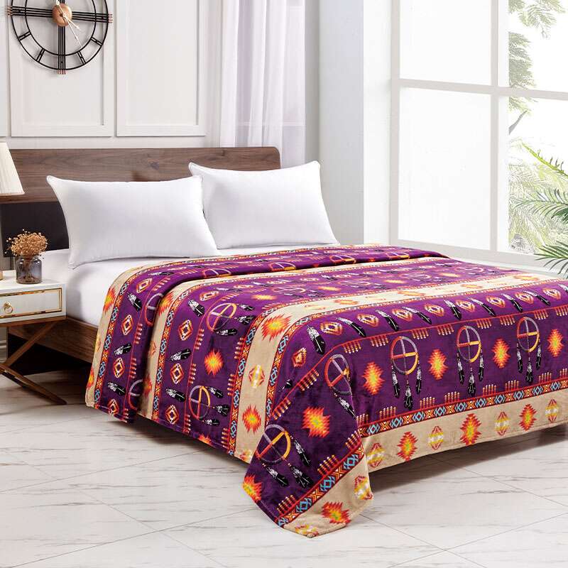 Silk Touch One Ply Blanket Includes Ribbon Packing Size: 80×80 Queen Colour: Assorted Design: Medicine Wheel w/Eagle Feather 2021 Quantity: 12/Box Sold by Box!