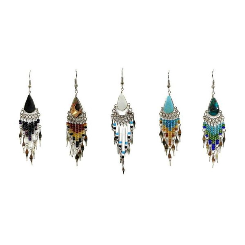 Stone Earring w /Long Beaded Dangle ( ST-B-EAR)