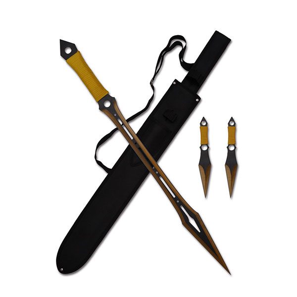Tactical Machete Sword with Two 7.5″ Throwing Knives – T661086GD