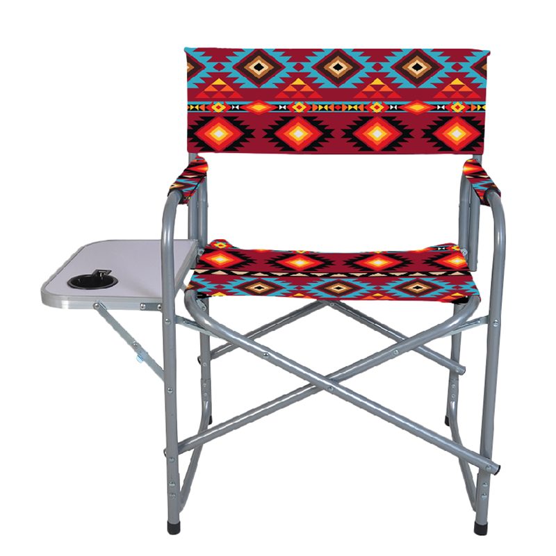 Printed Directors Chair with Side Folding Table Colour: Assorted Design: Thunder Wheel 2021 Weight Capacity: 180kgs (400lbs Quantity: 2/Box Sold By Box Only!