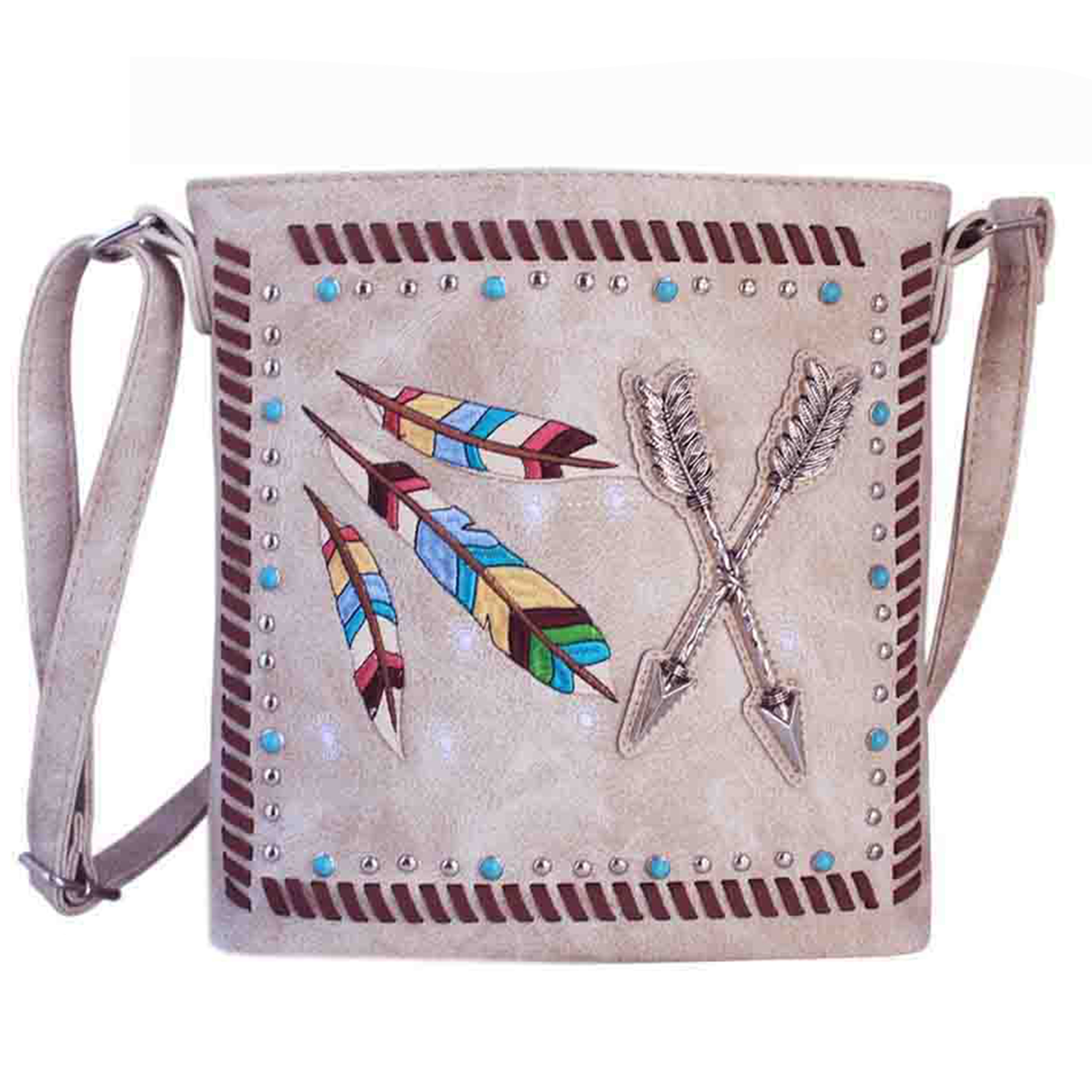 Western Rhinestone Feather Arrow Crossbody Bag – Beige (G605W123AR BG)