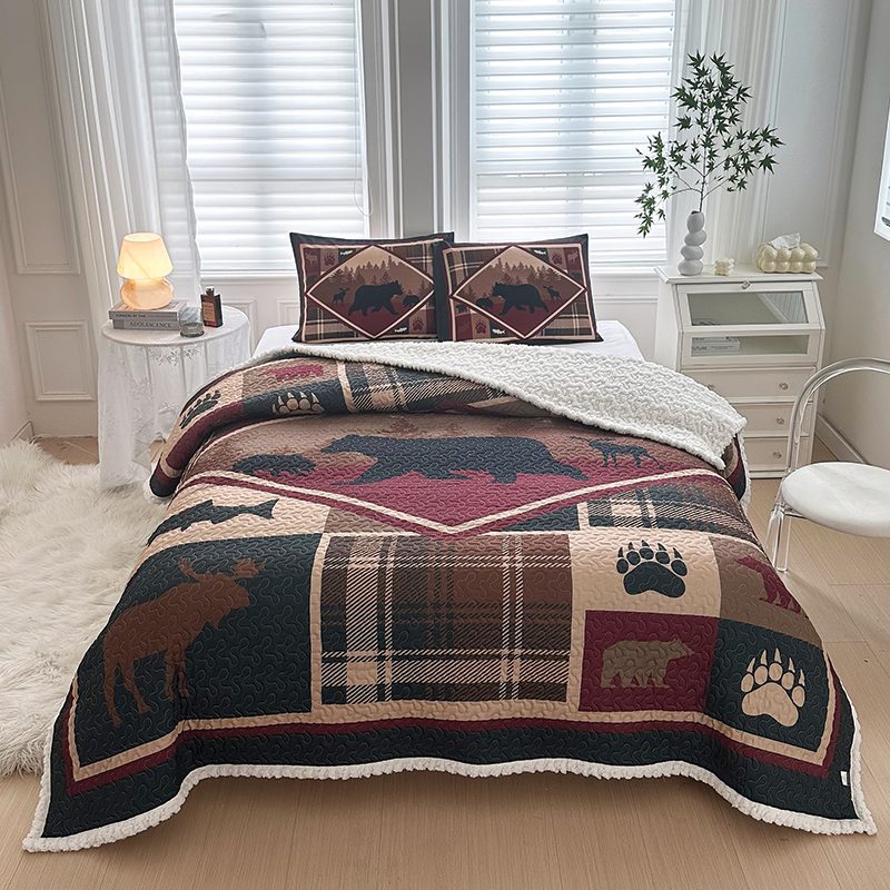 Wild Retreat Sienna Sherpa Lined 3 Pcs Queen Size Quilt Set Includes: • 1 Quilt Cover • 2 Matching Pillowcases Size: Queen Quantity: 4/Box Sold by Box!
