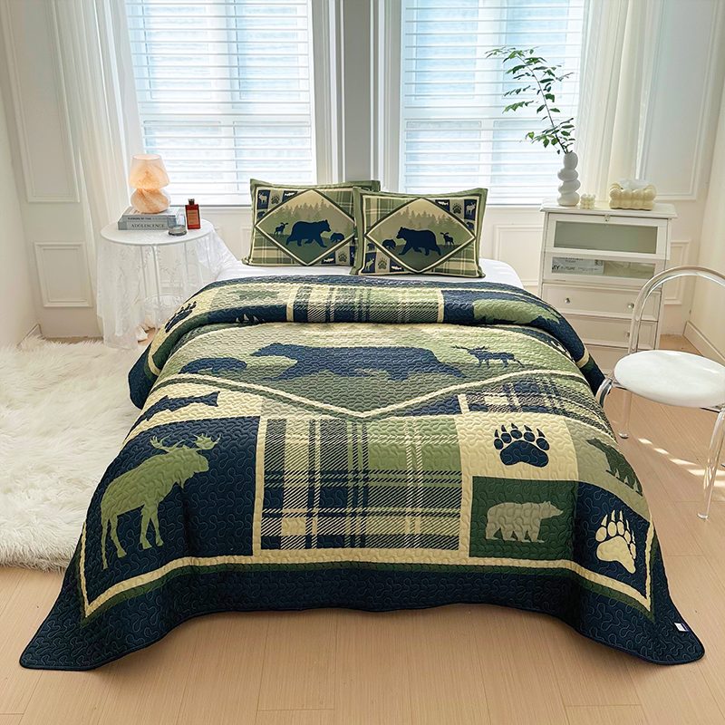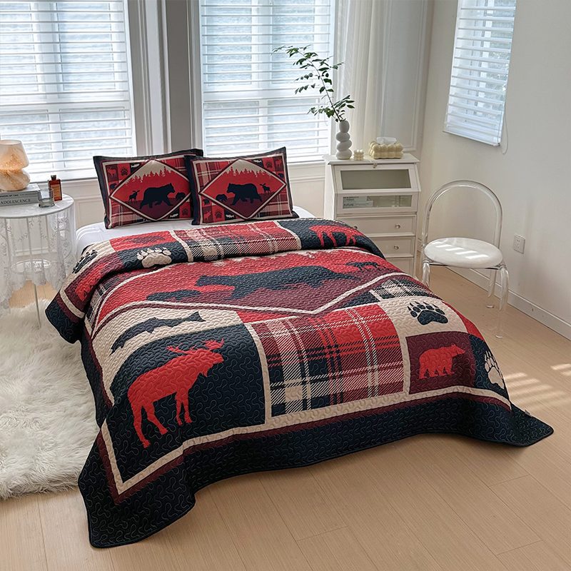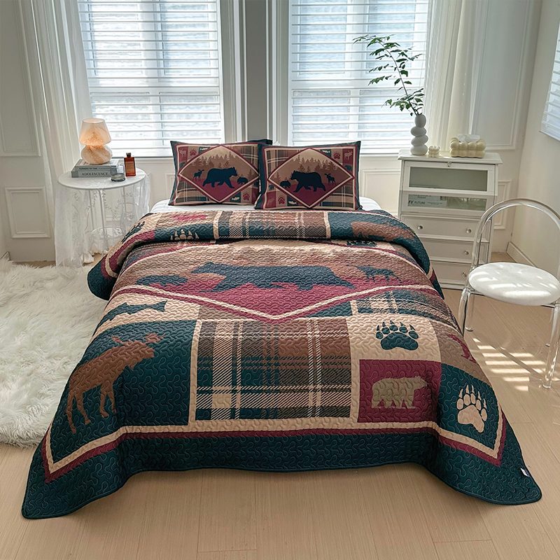 Wilderness Retreat Black Bear 3 Pcs Queen Size Reversible Quilt Set